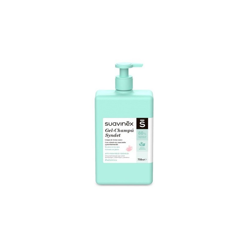 El gel-champú de Suavinex limpia demanera suave la piel y el cabello del bebé gracias a su fórmula syndet (sin jabón).